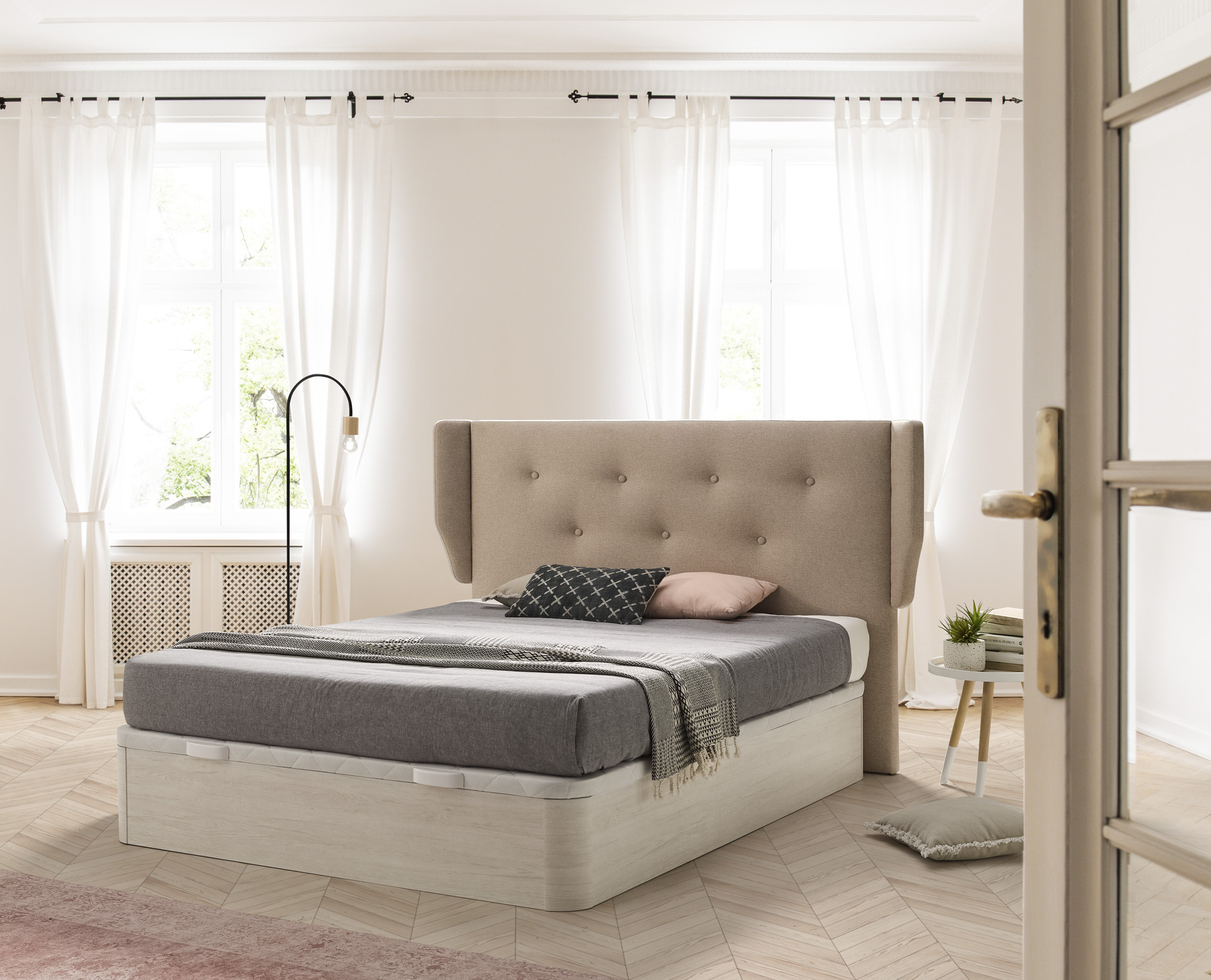 Altura total 36,5 cm Capacidad interior 28,5 cm Grosor arcón 4 cm Tablero tapa multiperforado Tejido tapa antideslizante Tirador de madera Acabados de serie