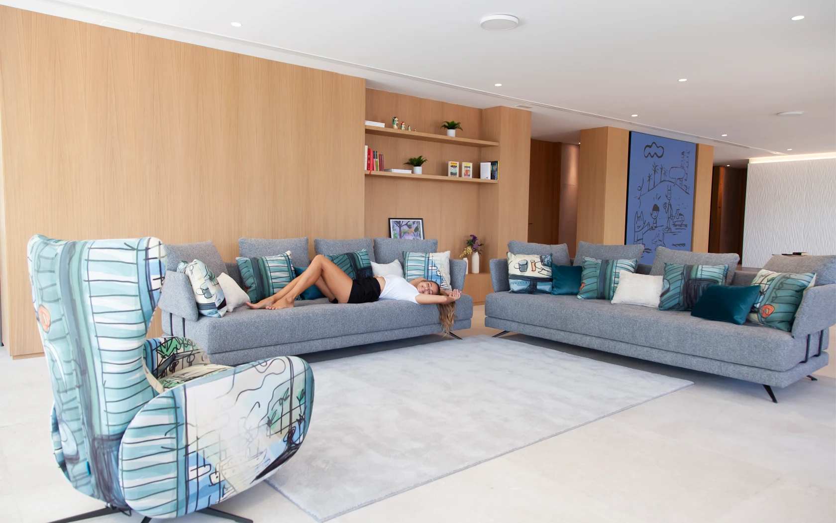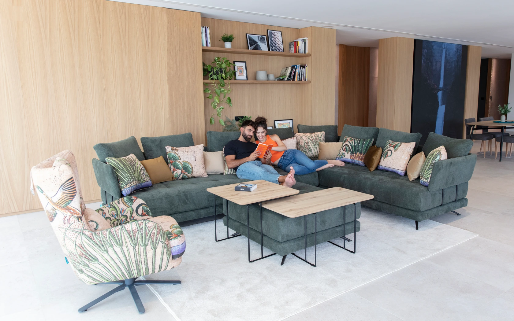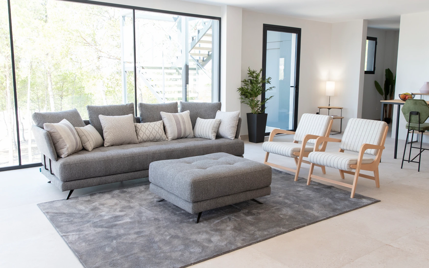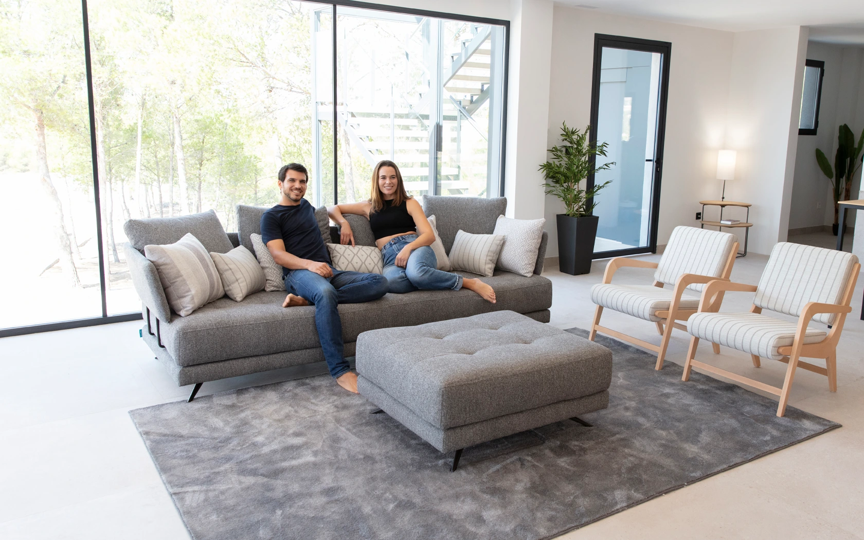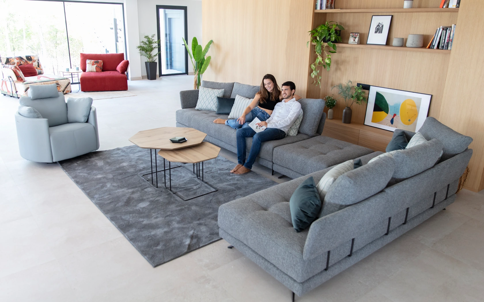 Pacific is one of those models that you like at first sight and fall in love with when you try them out. It is a modular programme made up of several platforms of different shapes and sizes to which we can add or remove the backrests in the blink of an eye by means of an ingenious fastening system. In this way, the platform of a puff can be transformed in a minute into a module or an armchair, without the need for screws or tools. We can go from two independent sofas to a conventional modular or a modern chaise longue open on both sides. With a generous depth, Pacific allows you to play with its different cushions to adapt to every posture or situation. In addition to the different sizes of rectangular platforms, this model has several curved pieces that allow us to create the most welcoming You&Me, an attractive chaise longue or an elegant curved sofa in two different sizes, very original and cosy.