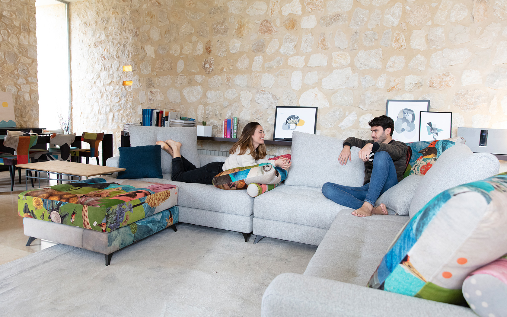 The Manacor model is a modular sofa to enjoy. Thanks to its multi-positional backrests we can find the posture we adopt at different times of the day. It is surprising how such a simple system can bring so much happiness when it comes to enjoying it at home. There are various sizes of modules and pouffes with which we can create the composition that best suits our needs. Another of the great advantages of Manacor is that it is perfect for separating the dining area from the living room, from any angle its finishes are impeccable. The back cushions are not attached, they can be removed and placed wherever and however you want, until you get the desired posture. It is a design to live it, for comfort and functionality it is a sure success. Price subject to change due to customisation, size and upholstery.