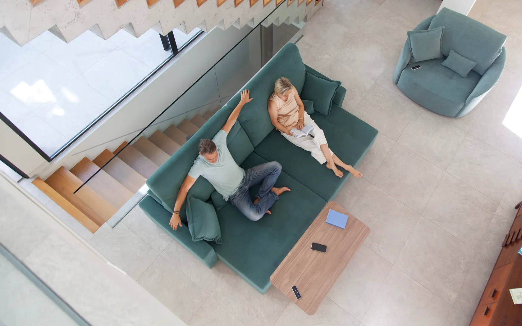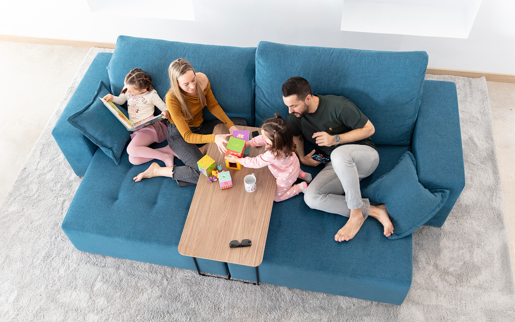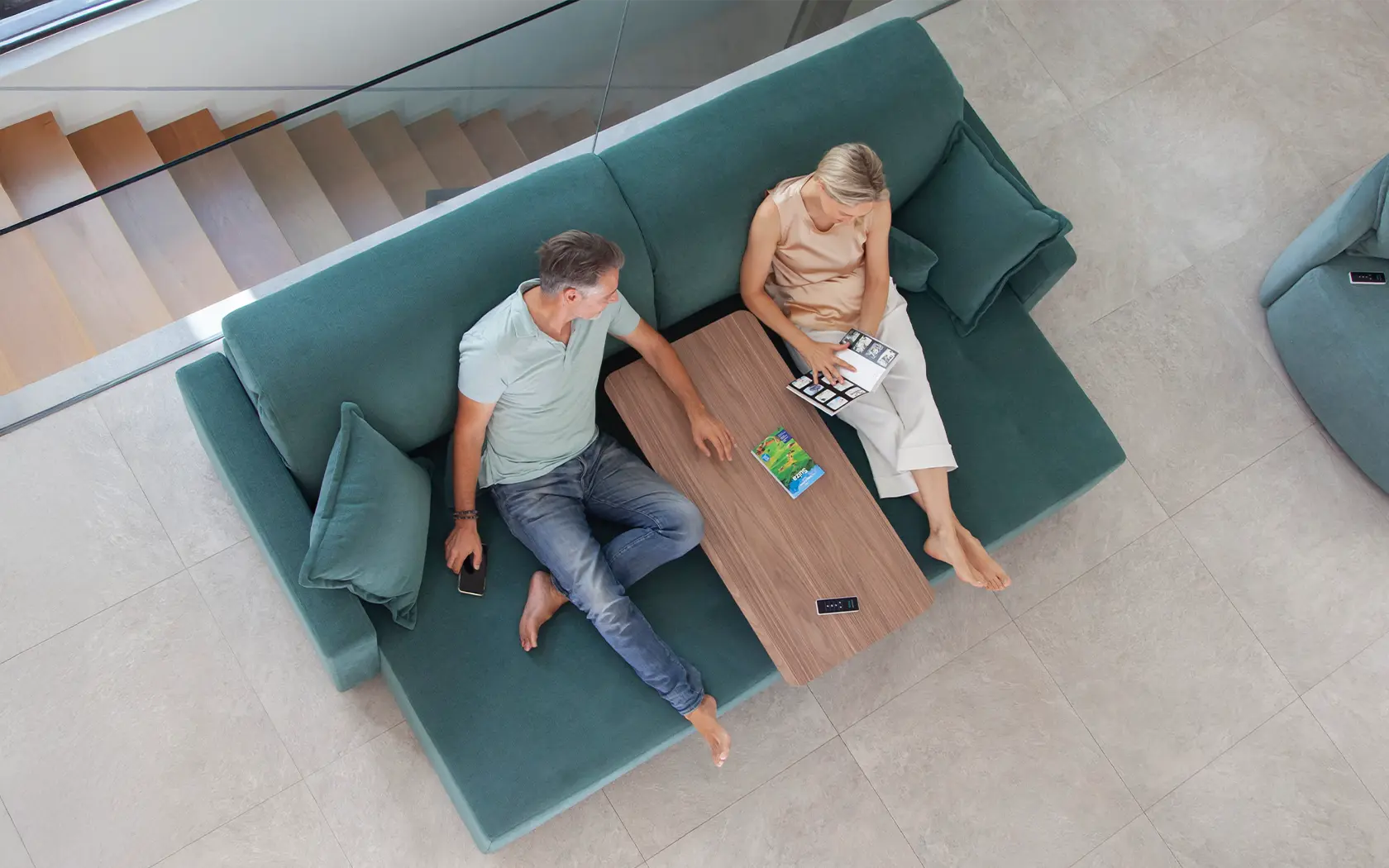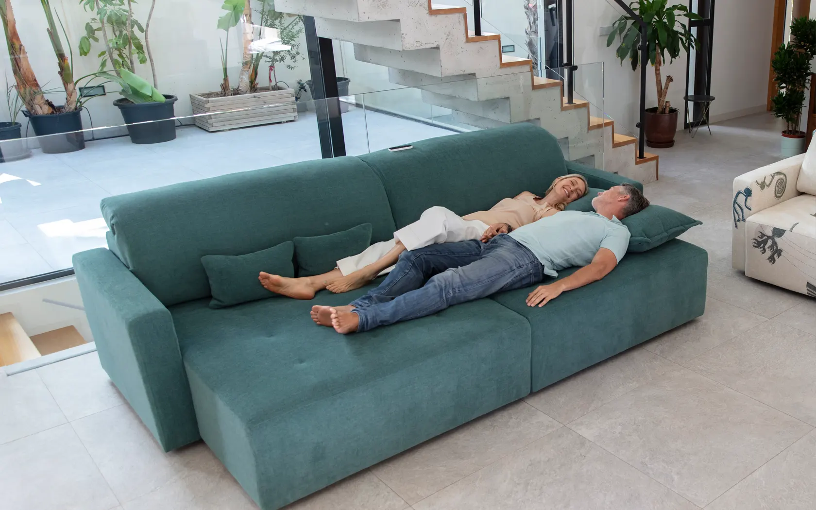PARADIS is not a conventional pull-out sofa. It will allow you to have a huge chaiselonge or a sofa with a depth of just 99 cm. Its seat increases up to 60 cm with a motorised pull-out system.